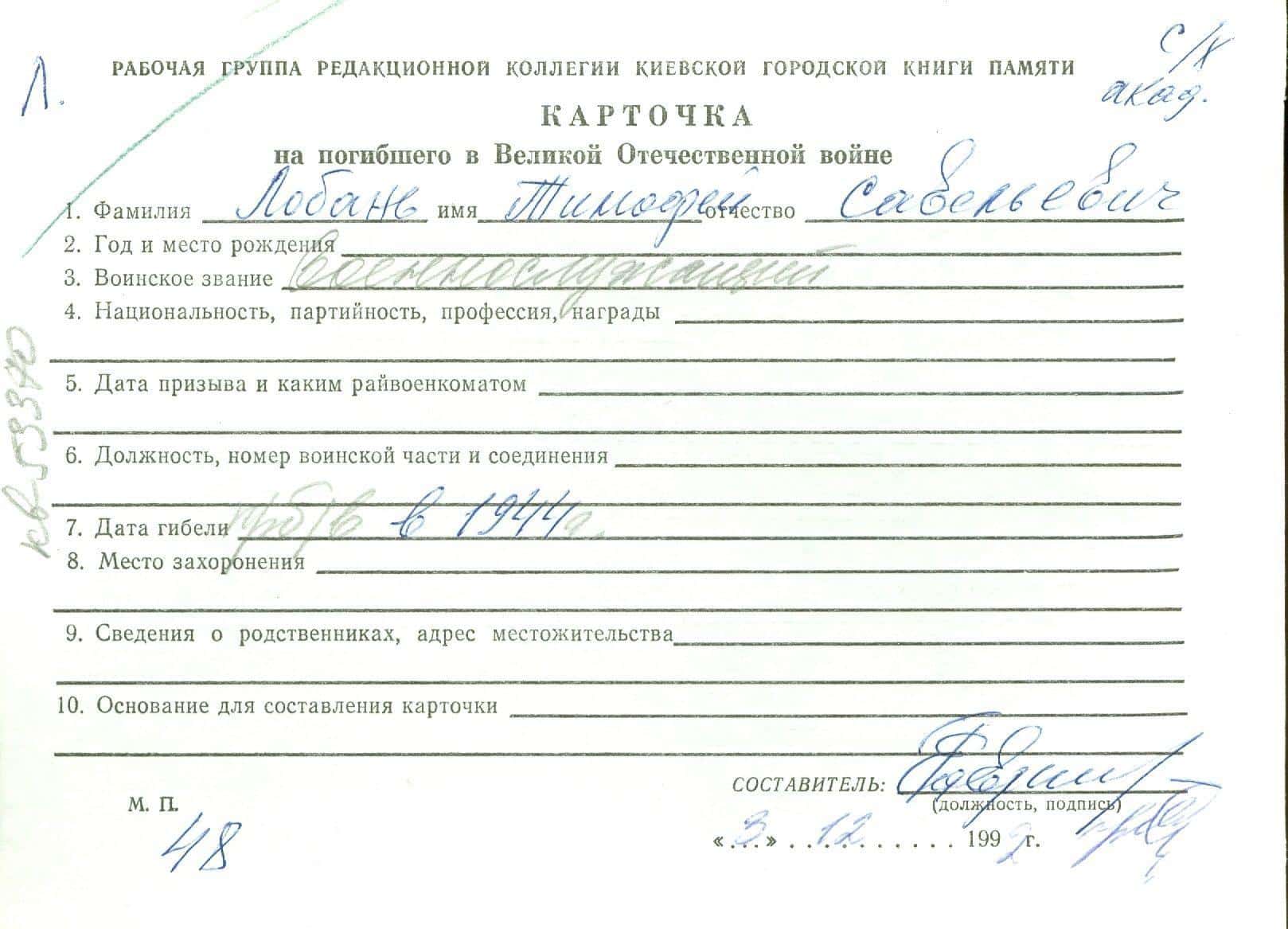 | Прізвище мовою оригіналу | Лобань |