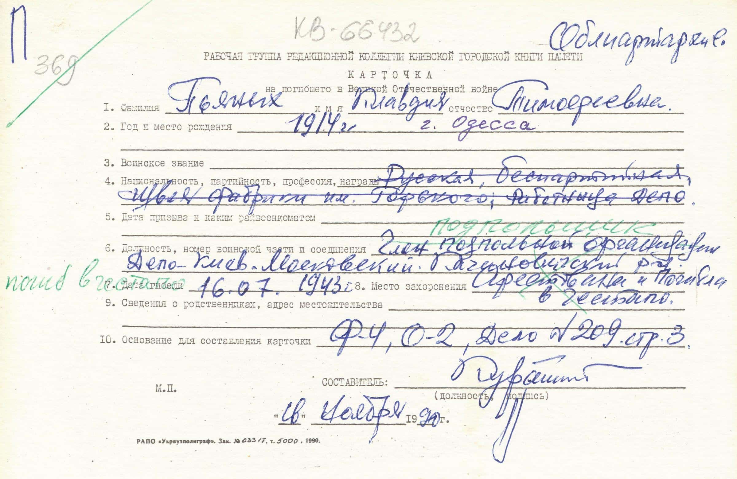 | Дата вибуття | 16.07.1943 |